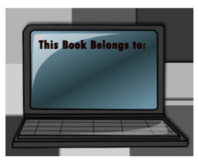 A printable bookplate to identify the owner of a book, with a laptop computer. Great for tech books, schools, and more.
